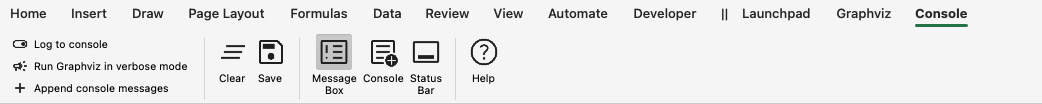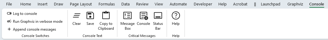 The Console ribbon tab is activated whenever the console worksheet is opened from the Launchpad. It appears as follows:
