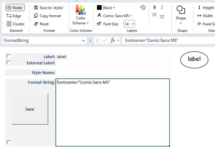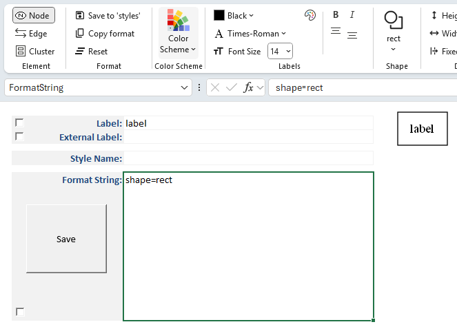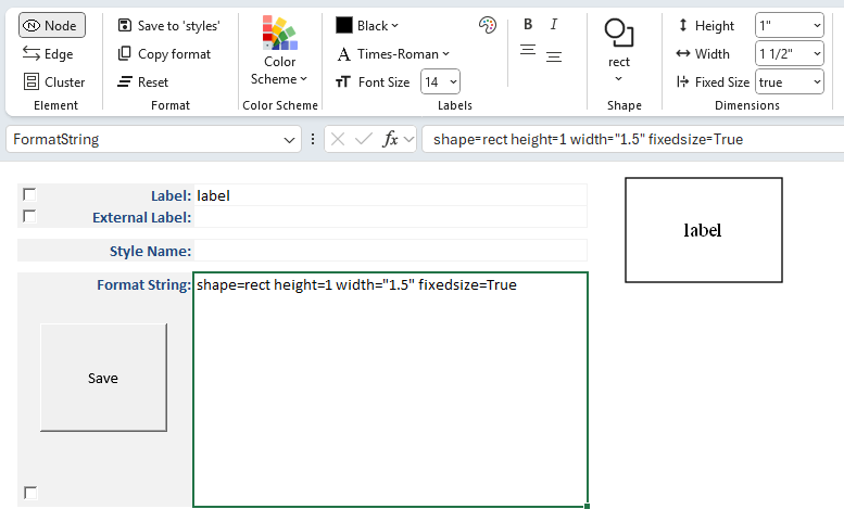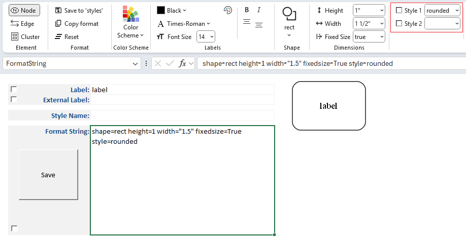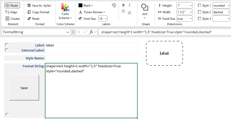 - Format String — the underlying style specification containing the Graphviz attributes.