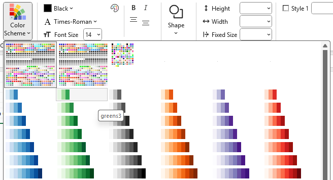 Graphviz supports multiple color scheme families, which define how color names are interpreted. All Graphviz color schemes are supported in the Style Designer.
