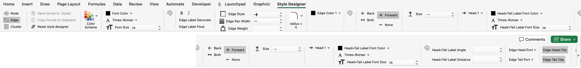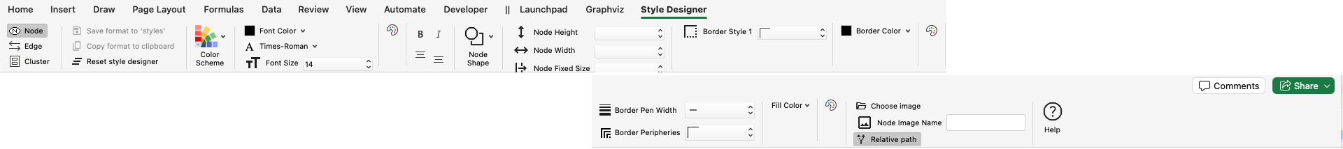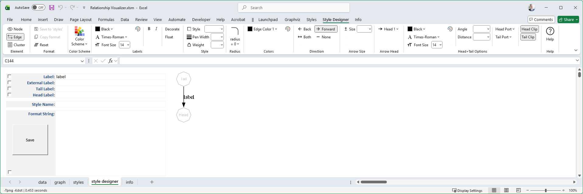 The Style Designer worksheet provides an adaptive interface for composing Graphviz style specifications. It consists of the following constructs: