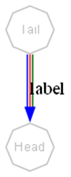 headclip=false, the edge is not clipped to the node boundary. The spline and arrowhead may extend into the interior of the node, often aiming at its center.