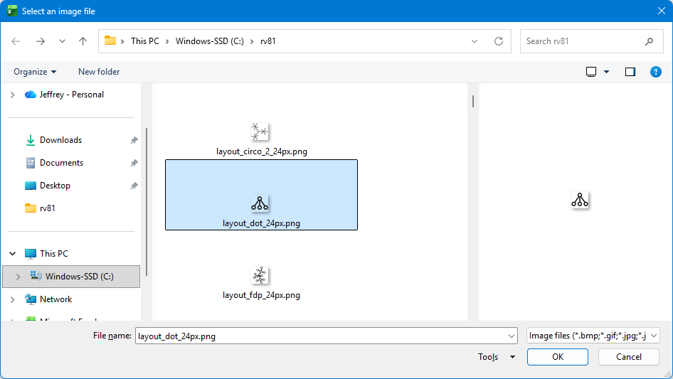 color=blue, style=dashed). - The preview image shows exactly how Graphviz will render the cluster. There are seven shapes of various sizes to simulate how a cluster might be used.