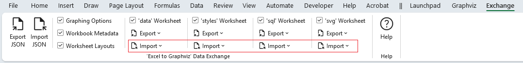 data, styles, sql, and svg worksheets choices have Import of Append and Replace.