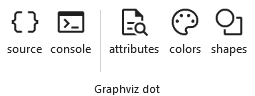 | Graphviz dot | ![]() | Provides access to tools which let you see the dot source code generated by the Relationship Visualizer, and the messages emitted by Graphviz when the dot command is executed to create the graph. |