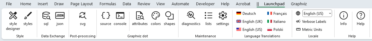 | Set Language | Dropdown List | Establishes the language translation to use in ribbon tabs and worksheet headings. Changing the language has immediate effect, and you do not need to close and reopen the workbook. |