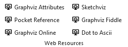 | Web Resources | ![]() | Six buttons which can launch the user's default browser and display a web page pertaining to a Graphviz topic. |
