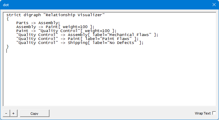 | Copy Source to Clipboard | Button | Selects all the Graphviz source code and copies it to the clipboard. |