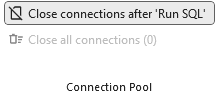 | Close connections after 'Run SQL' | Toggle Button | Determines whether connections remain open (pooled) after running SQL statements or are closed immediately after execution. |