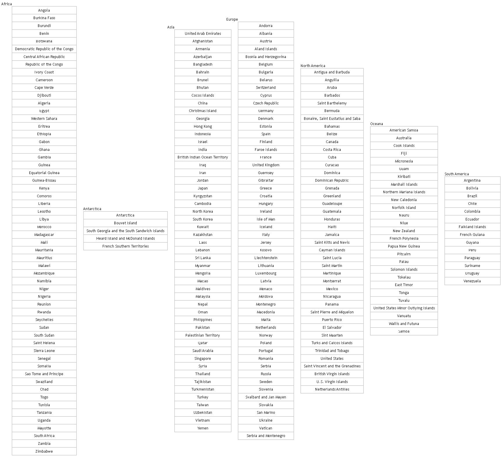 | Angola | AF | Africa |
