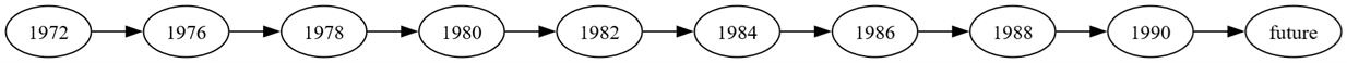 { rank="same"; "1988"; "KornShell"; "Perl"; "rc"; }Step 2 – Get a list of unique years