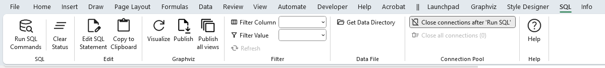 See the section SQL Ribbon Controls for full details.