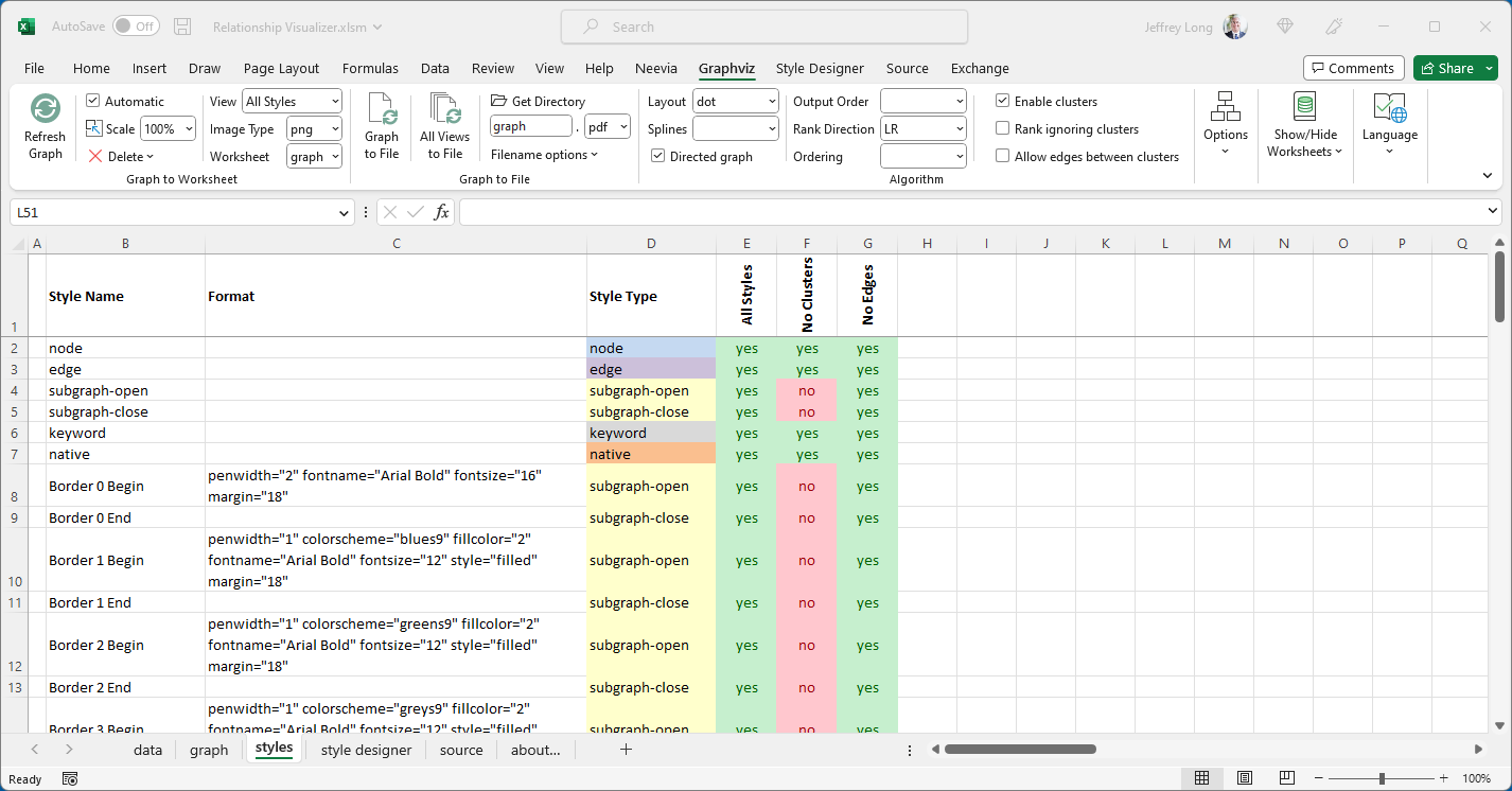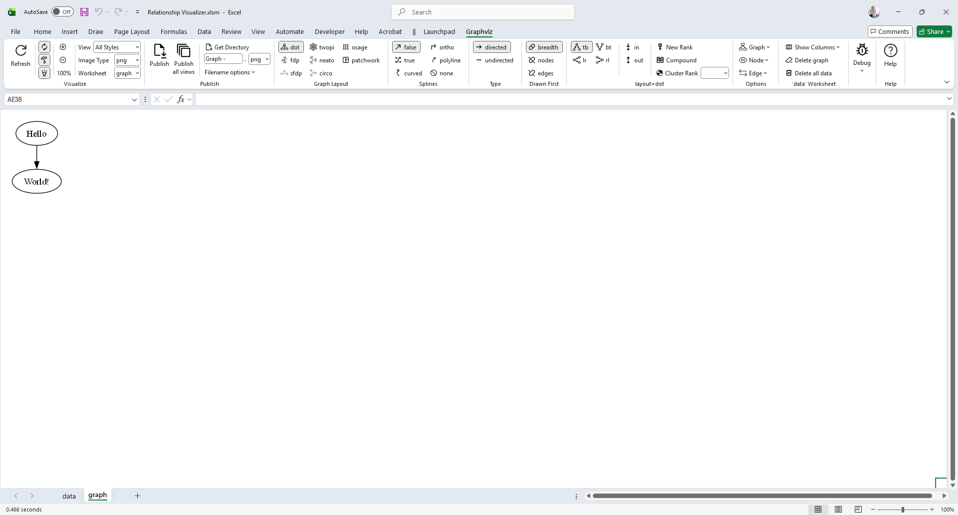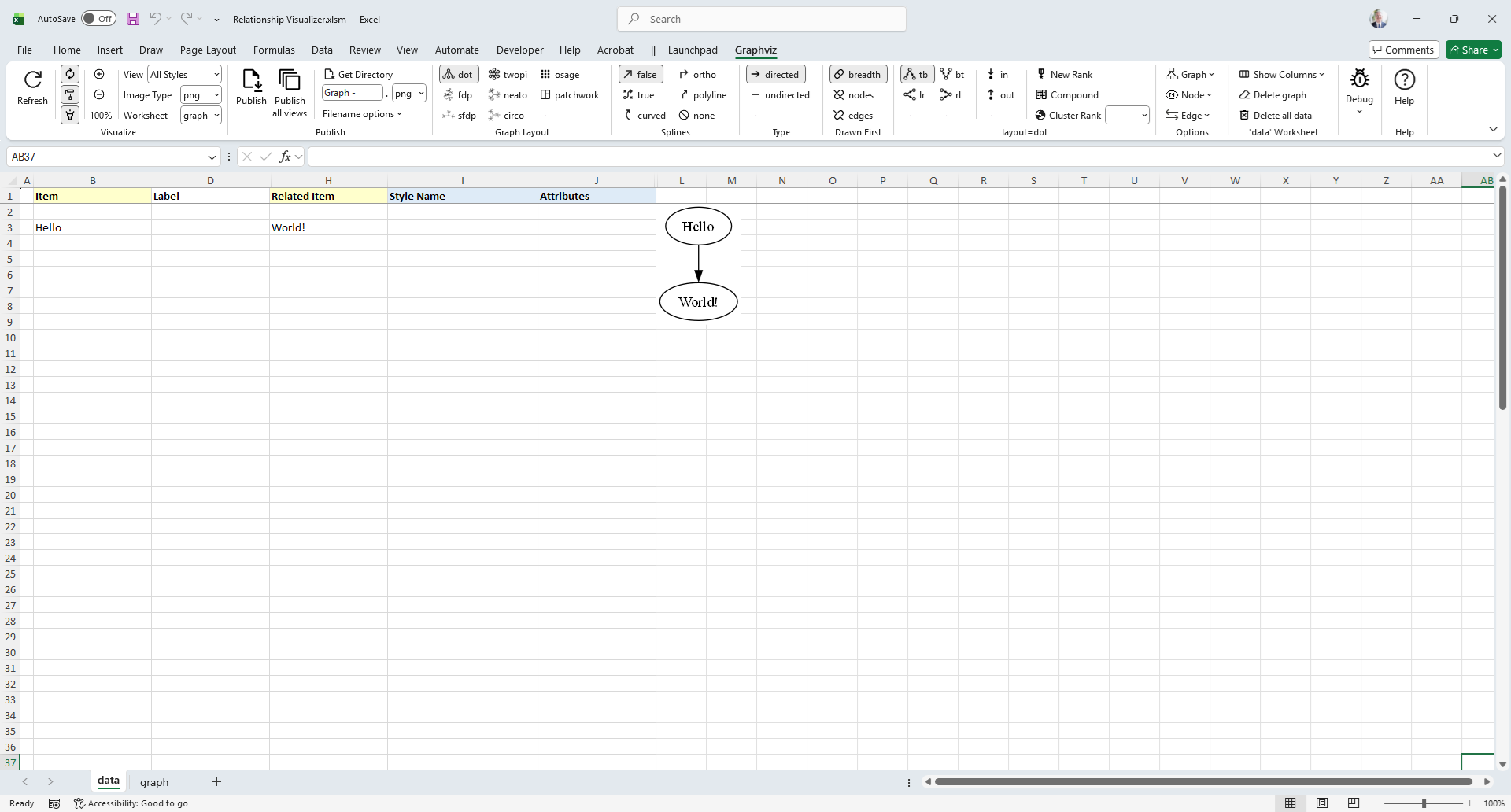 It also provides links to Graphviz editing and rendering tools, allowing you to experiment with the DOT language outside the workbook.